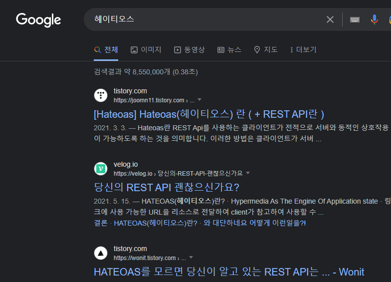 이런식으로 항목별 상세링크를 알려주는 방식을 HATEOAS . 발음은 / 헤이티오스/ 라고 부릅니다. 아래처럼 구글에서 검색하면 많은 정보가 나오니 더 자세한 정보는 구글링을 해주세요.