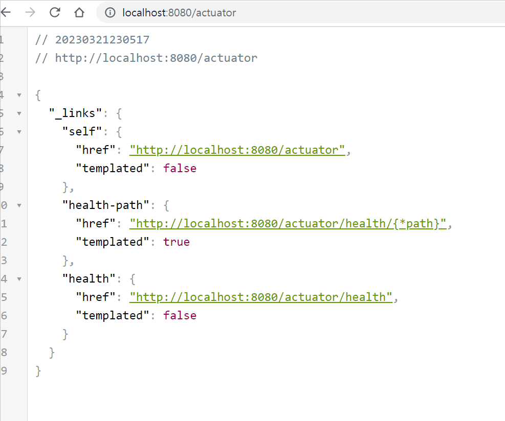 이전 시간에 actuator 를 통해 http://localhost:8080/actuator 로 접속시 아래와 같은 json 이 나오고, json 내의 링크들에 들어가면 또 다시 json 이 나오는 구조라고 설명을 했습니다. ( 이걸 HATEOAS 라고 부른다고 했었죠? )