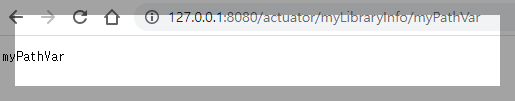아래처럼 /actuator/myLibraryInfo 하위에 myPathVar 라는 path 파라미터를 넣었습니다. 응답에 myPathVar 라고 path 파라미터로 넣은 값이 잘 리턴되는걸 알 수 있습니다.