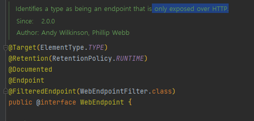 @Endpoint는 web 과 jmx 둘다 지원해주는 endpoint 입니다.