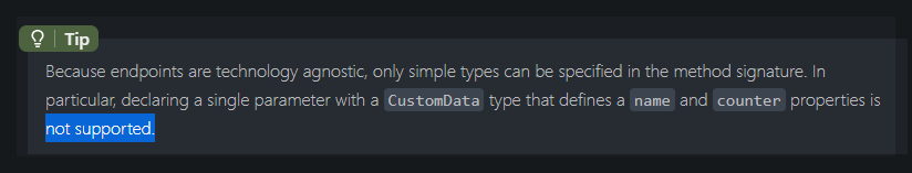 spring mvc로 비유하자면, 입력값을 java DTO 타입으로 변환이 안되므로 simple 한 argument resolver 가 지원된다고 볼 수 있습니다.